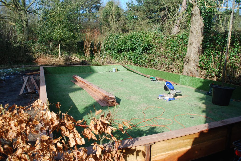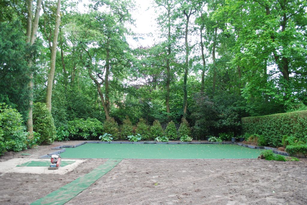 - Kunstgras aanloop naar de trampoline