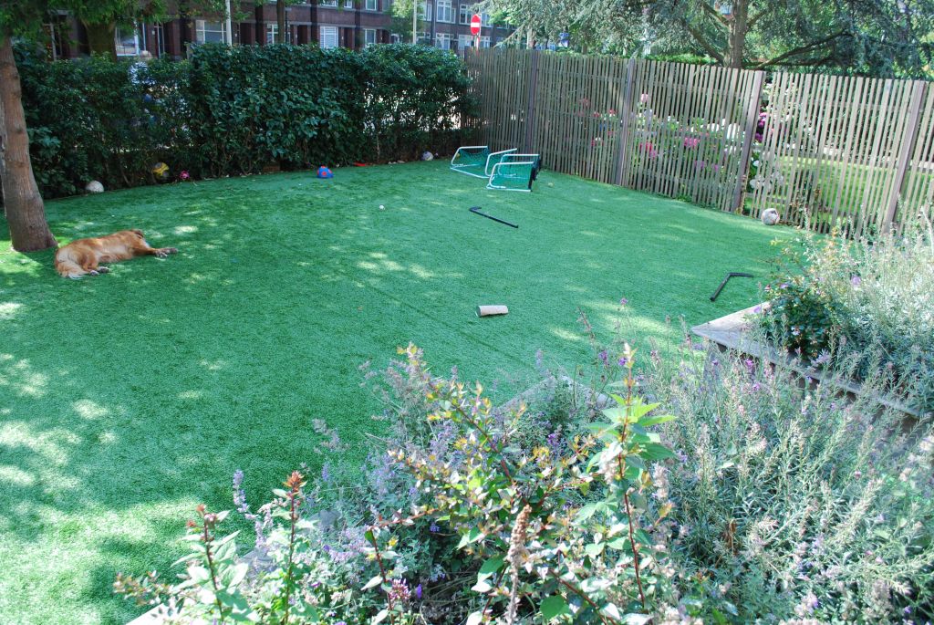 Kunstgras ziet er tegenwoordig (bijna) net zo mooi uit als echt gras. En op sommige plekken in de tuin groeit gewoon gras niet, dus dan is kunstgras de oplossing.