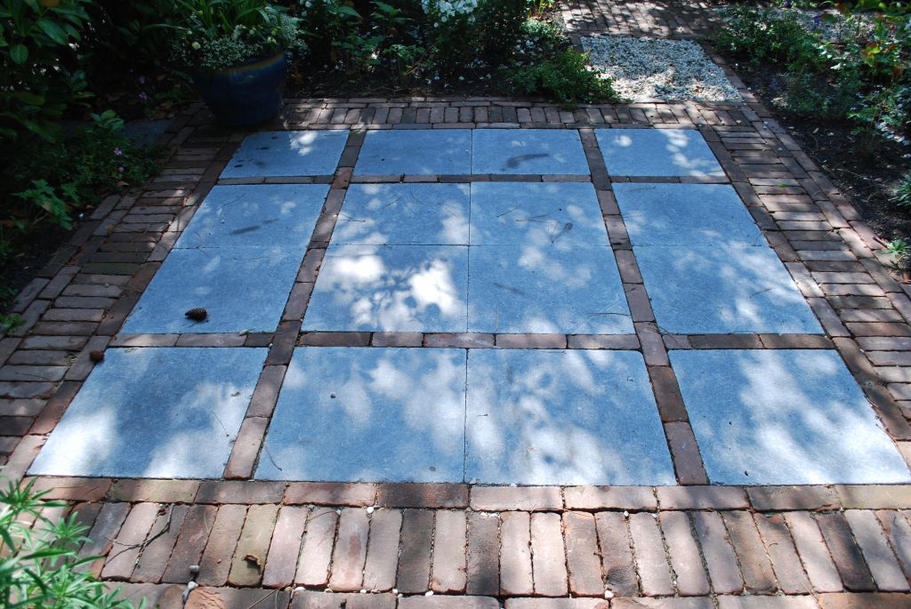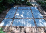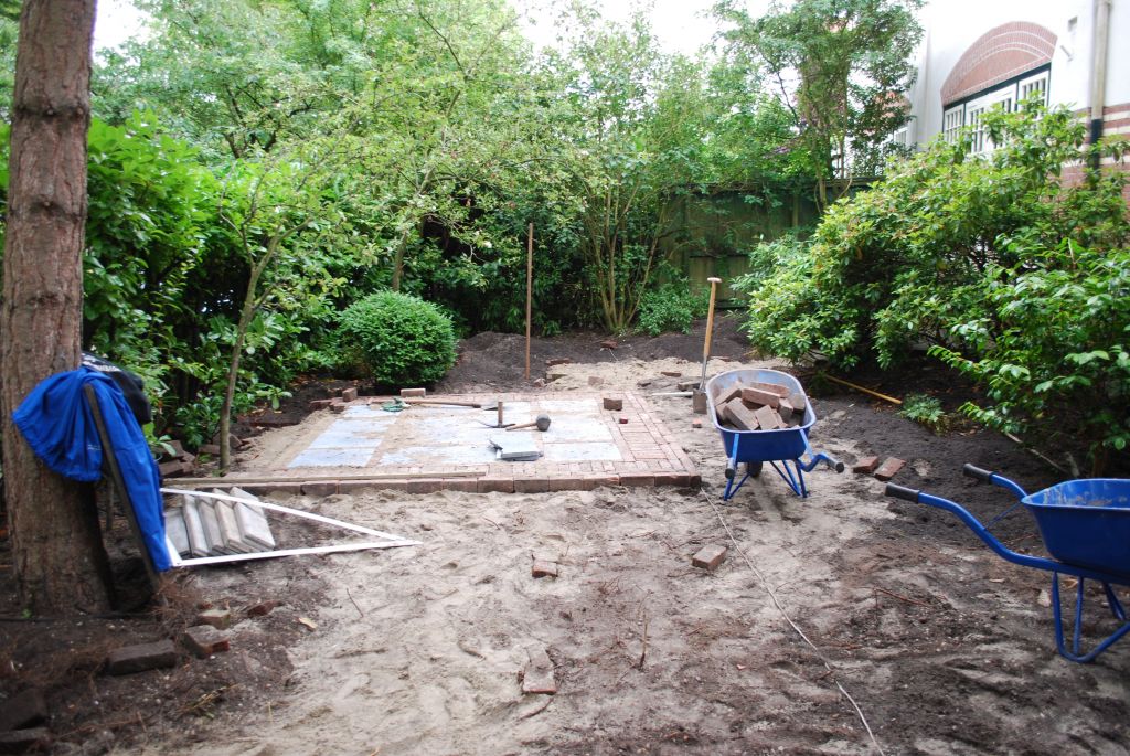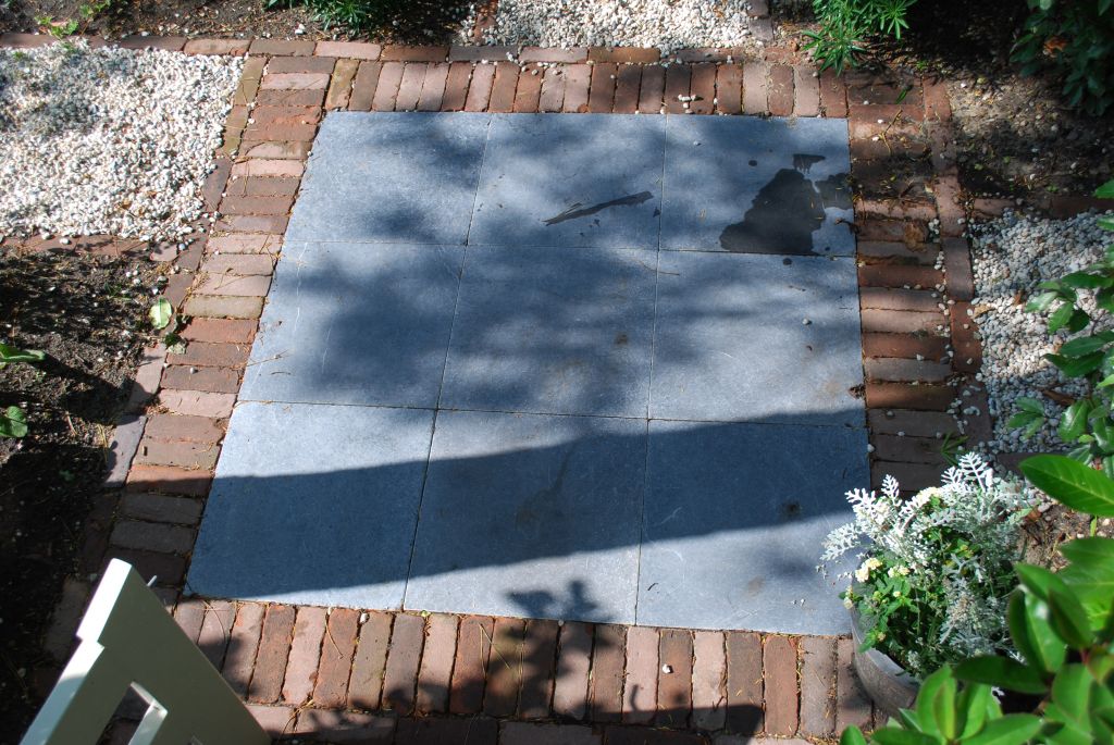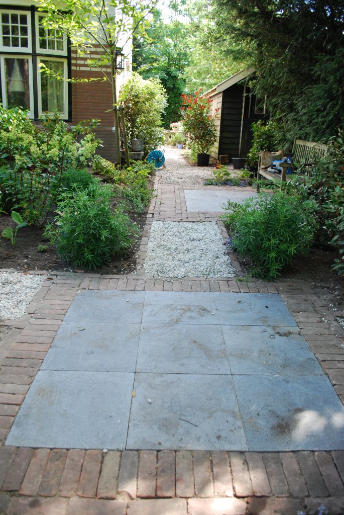 - Terras: Blokken van 4 tegels met streklaag