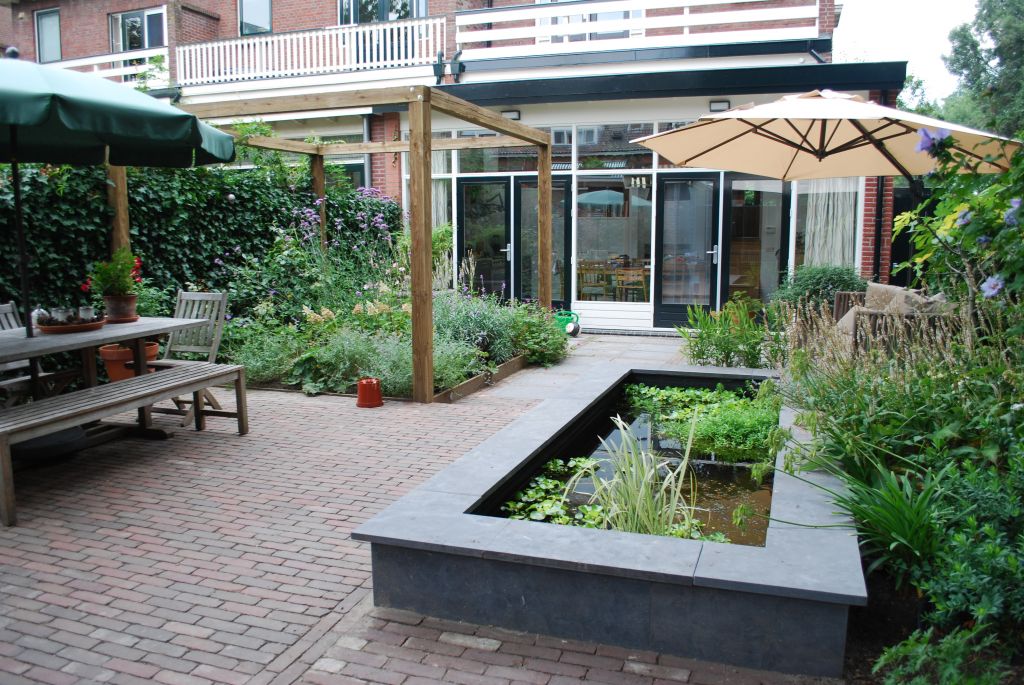 Achtertuin met vijver en pergola in Rotterdam